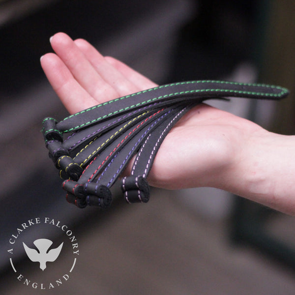 Our stitched jesses are available just the way you want them, with a wide range of stitching colours, that will match our bespoke anklets