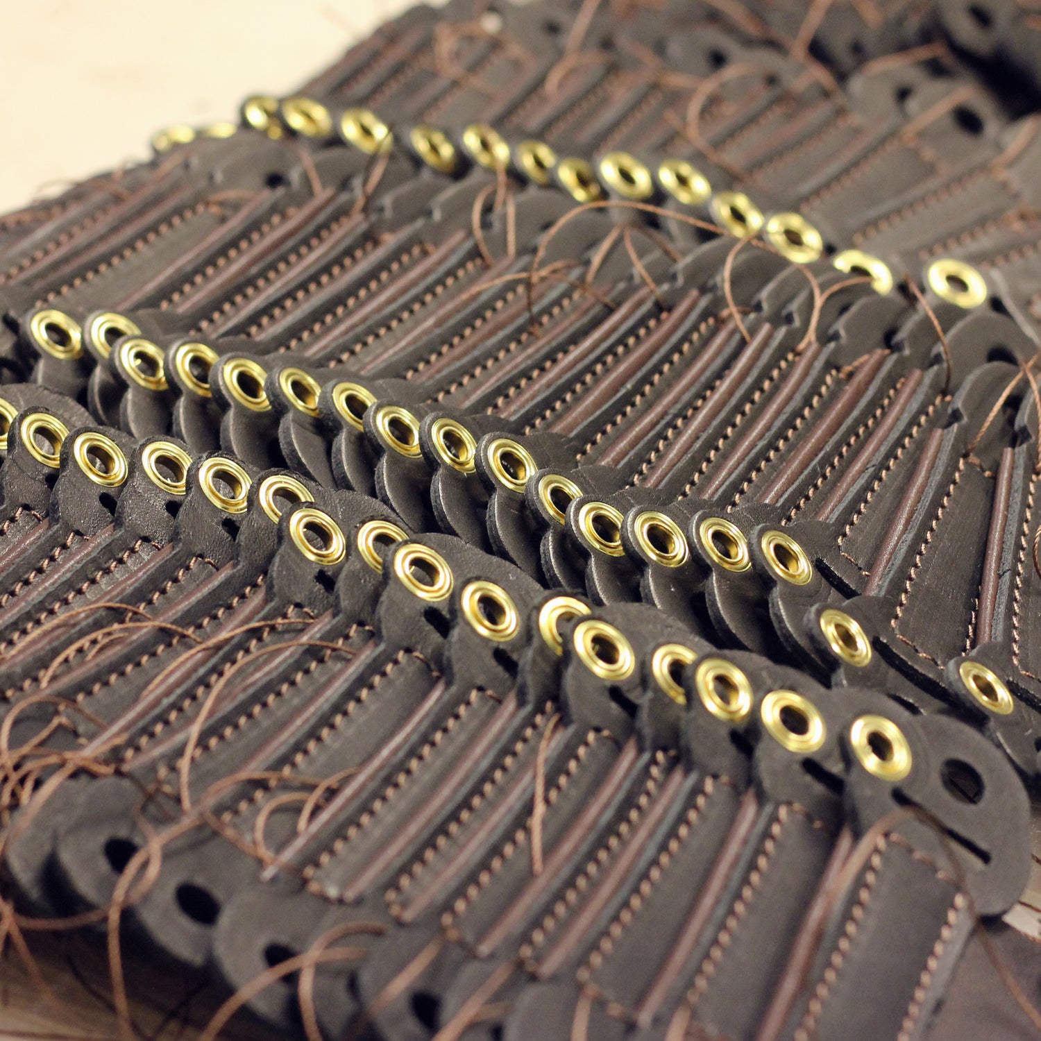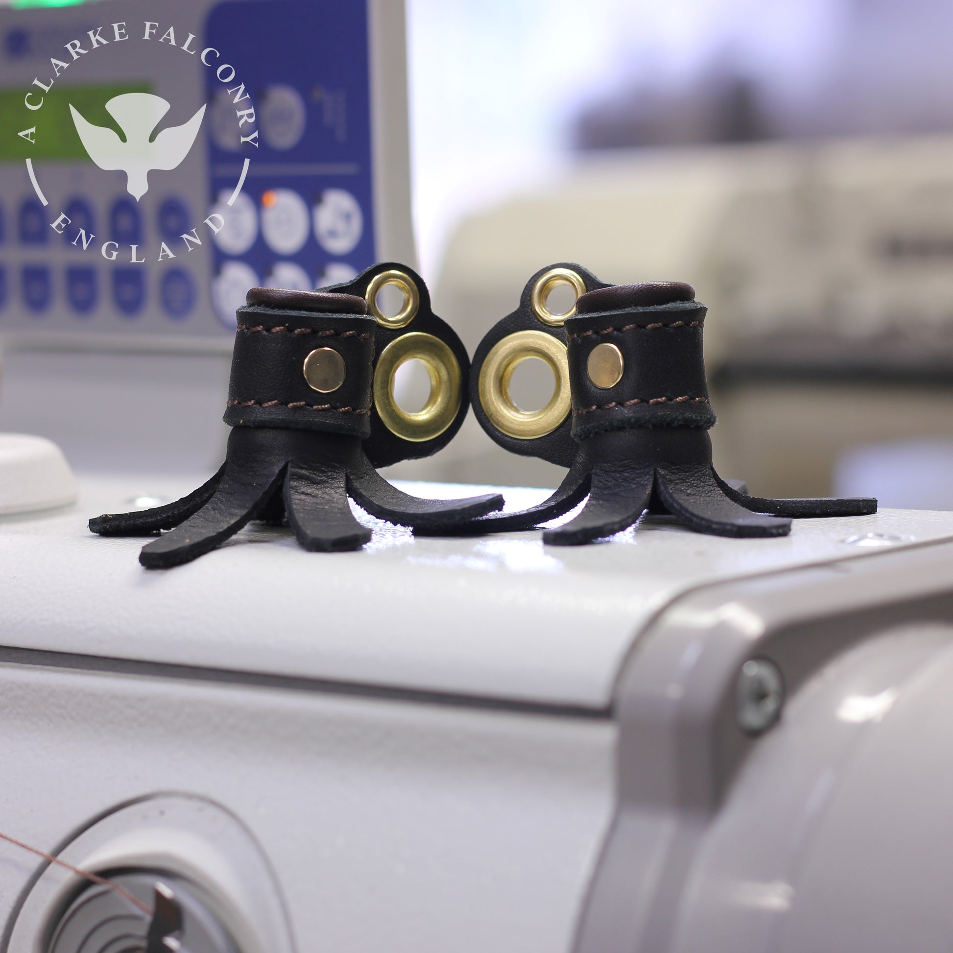 Made from heavy-duty leather with solid brass studs, these chaps give the bird freedom to foot naturally while still providing protection.