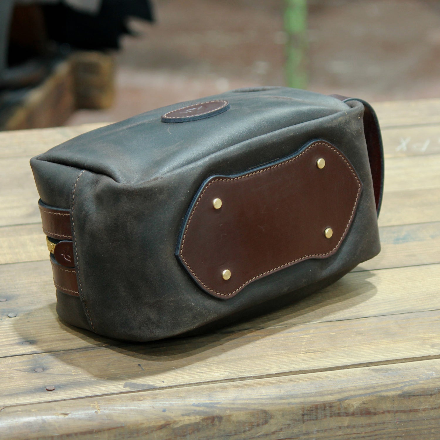 Every piece I make is designed to last and to get better with age. I choose leathers that don't need holding up with synthetic materials and build character the more they’re used. The hide I picked for this washbag does exactly that.